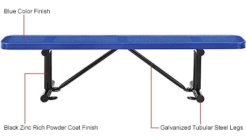 - 6' Outdoor Steel Flat Bench, Perforated Metal, Blue