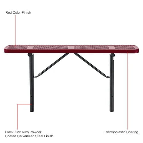 6' Outdoor Steel Flat Bench, Perforated Metal, In Ground Mount, Red