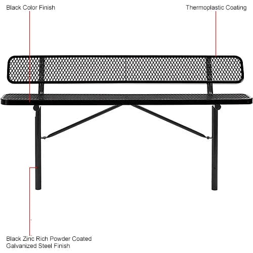 Centerline Dynamics Outdoor Seating 8' Outdoor Steel Bench w/ Backrest, Expanded Metal, In Ground Mount, Black