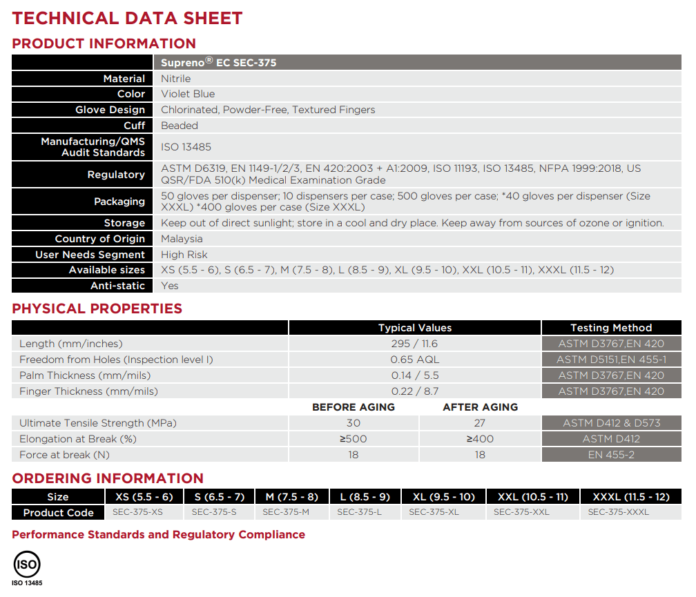 Ansell MICROFLEX® Supreno® EC SEC-375 Nitrile Gloves, Powder-Free, Size S, 500/Case