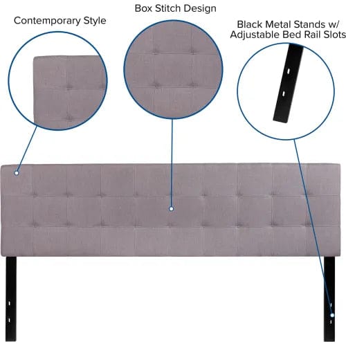 - Bedford Tufted Upholstered Headboard in Light Gray, King Size