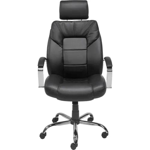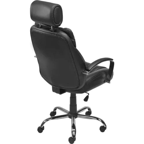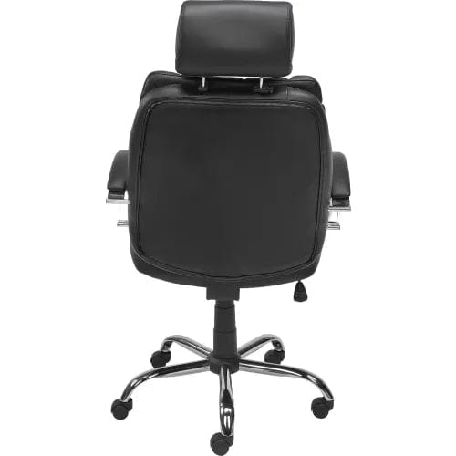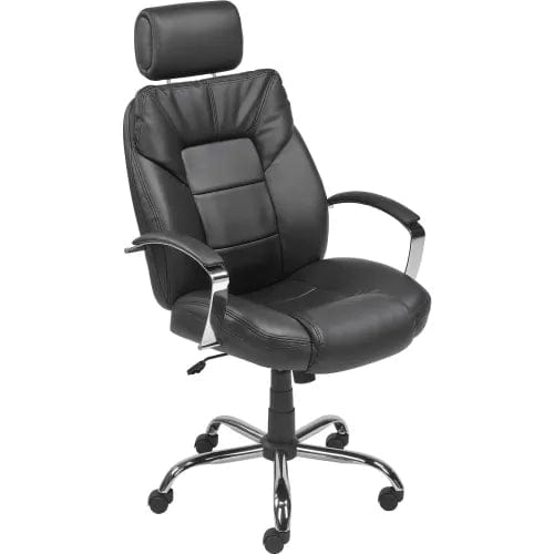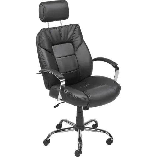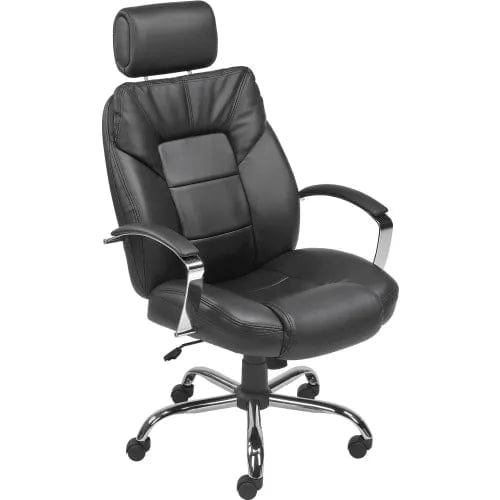 Executive leather chair supports up to 400 lbs. to accommodate big & tall users. It includes an adjustable headrest, built-in lumbar support, a waterfall front edge, fixed padded armrest and soft bonded leather upholstery for comfort and support. Ergonomic adjustments include tilt tension and pneumatic seat height adjustment with tilt lock. Overall seat dimensions 23-1/2"W x 21-1/2"D x 19-5/8 to 23-1/4"H. Overall back dimensions 23"W x 35". 1 Year Limited Warranty