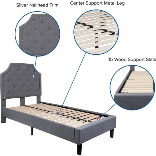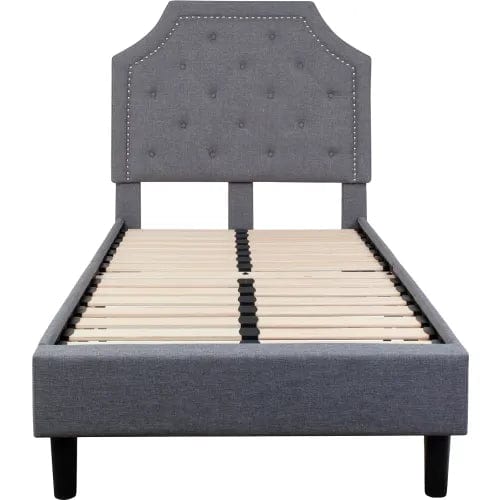 - Brighton Tufted Upholstered Platform Bed in Light Gray, Twin Size