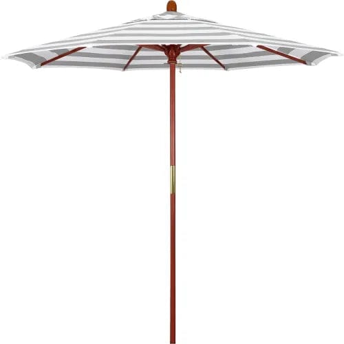 California Umbrella Grove 7-1/2' Patio Umbrella, Wood Pole, Olefin Gray/White Cabana Stripe Fabric