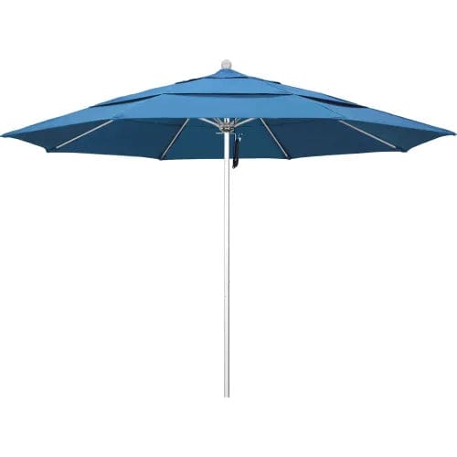 - California Umbrella Venture 11' Patio Umbrella, Silver Pole, Olefin Frost Blue Fabric