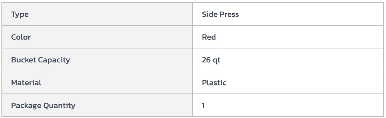 - Metal handle on top of bucket and smaller "helper" handle at the back of bucket assist with water disposal