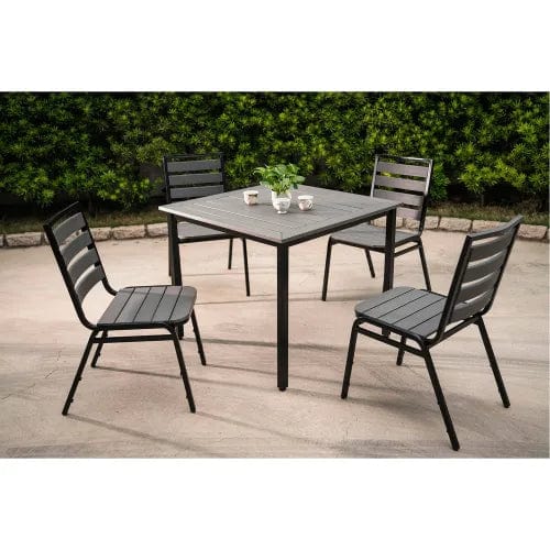 Resilient outdoor chair with ultraviolet protection features a simulated, Weathered Charcoal wood finish that combines the sleek style of wood with the durability of polystyrene to withstand outdoor conditions. It will not splinter, warp or rot and never needs refinishing. Steel tube legs resist warping to provide reliable, long-lasting support. Outdoor chair coordinates with Lorell® outdoor tables and benches (sold separately).