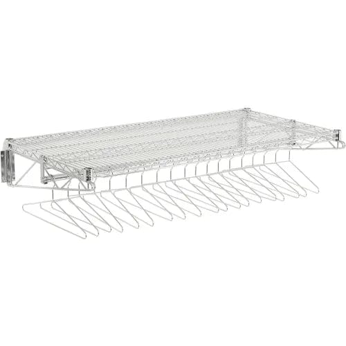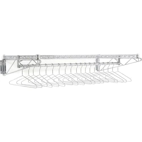 This Wall Mount Coat Rack is an attractive solution to garment storage. Durable black epoxy steel wire design minimizes dust accumulation and maximizes ventilation. Resists denting, chipping and rusting. Quick assembly - easily attaches to wall surface. 24"D x 48"W.
