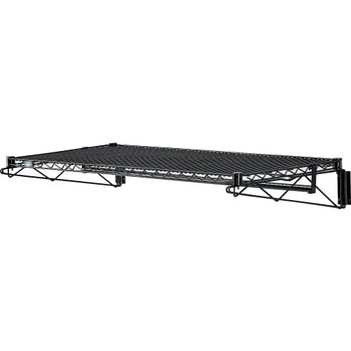This Wall Mount Coat Rack is an attractive solution to garment storage. Durable black epoxy steel wire design minimizes dust accumulation and maximizes ventilation. Resists denting, chipping and rusting. Quick assembly - easily attaches to wall surface. 24"D x 60"W.