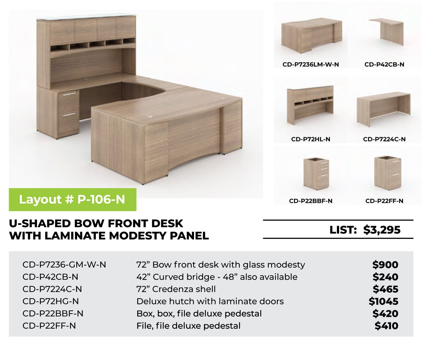 U-Shaped Bow Front Desk w/ Laminate Modesty Panel