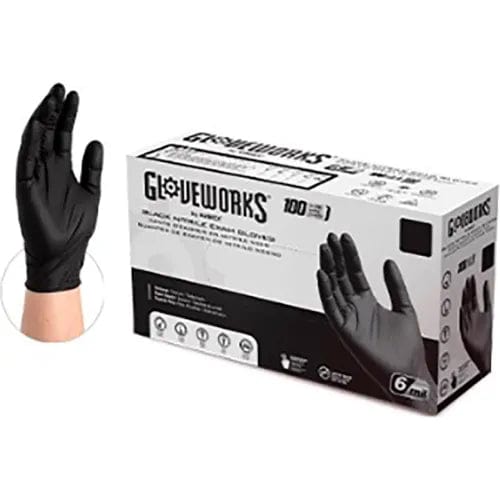At 6 mils thick, they resist punctures, rips, and tears better than comparable latex or vinyl disposable gloves. Excellent fit, feel, and tactile sensitivity. FDA approved for non-surgical medical use. Made from premium nitrile, these exam gloves provide comfort that rivals latex-but they will not aggravate latex allergies. Textured fingertips and a micro-roughened surface enhance grip. Extensive testing ensures they are suited for medical, dental, laboratory, biotech, veterinary, and home healthcare needs, as well as public safety, security, and tattoo parlor uses. Black color looks professional and hides dirt and grime.