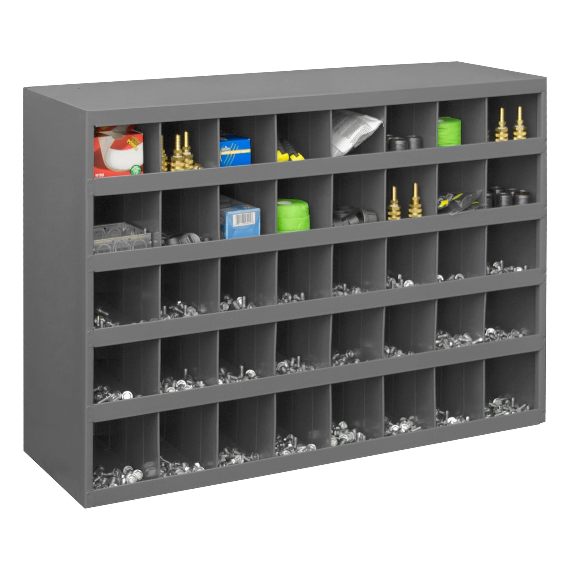 - Fully hemmed 1-1/8” bin fronts to hold labels and retain parts
