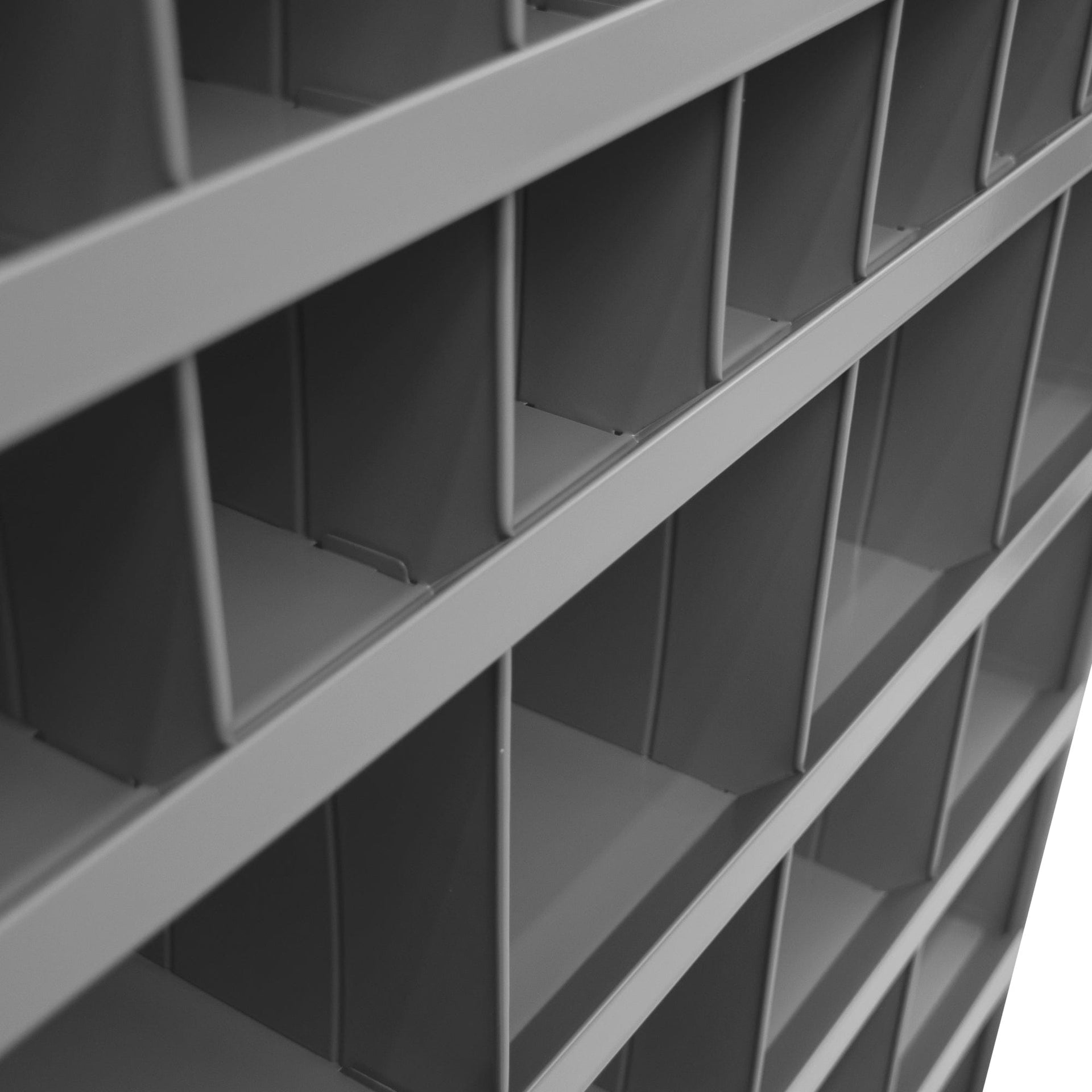 - Fully hemmed 1-1/8” bin fronts to hold labels and retain parts