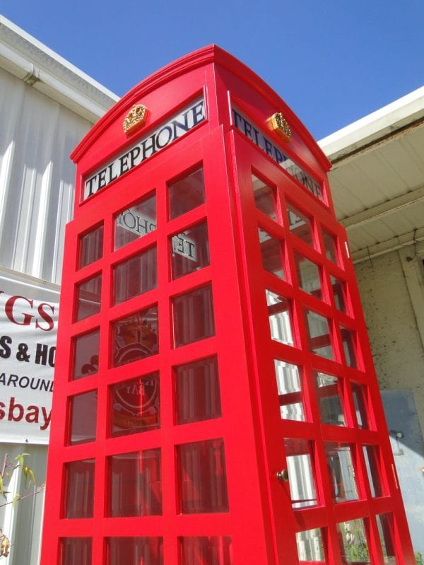 English Telephone Phone Booth – British Call Box Vintage Style Red Wooden