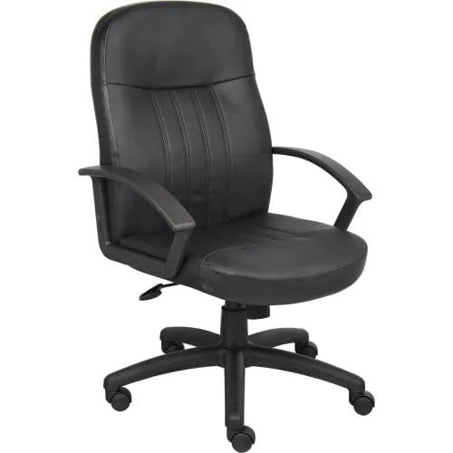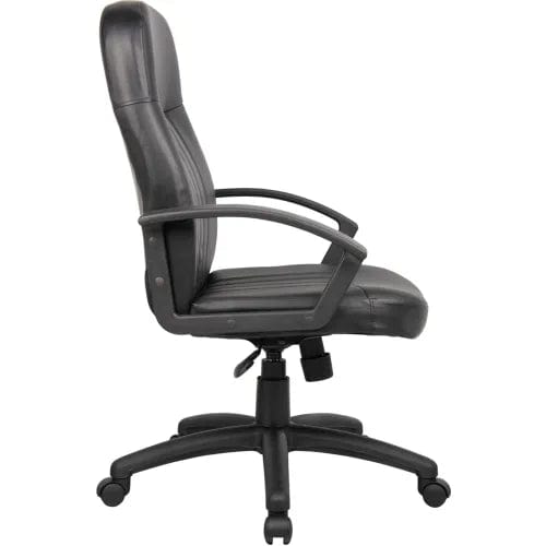 Executive Office Chair With High Back & Fixed Arms, Synthetic Leather, Black