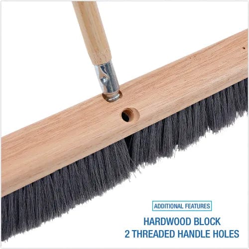 Floor Brush Head is the economical and reliable choice for sweeping floors in industrial settings with heavy foot traffic. The hardwood block is strong and durable for lasting use. Equipped with two threaded holes. Handles sold separately. Can be used on indoor or outdoor surfaces to push away dirt, dust and debris. Great for offices, lobby areas, communal spaces, stairways, warehouses, retail stores and kitchens.