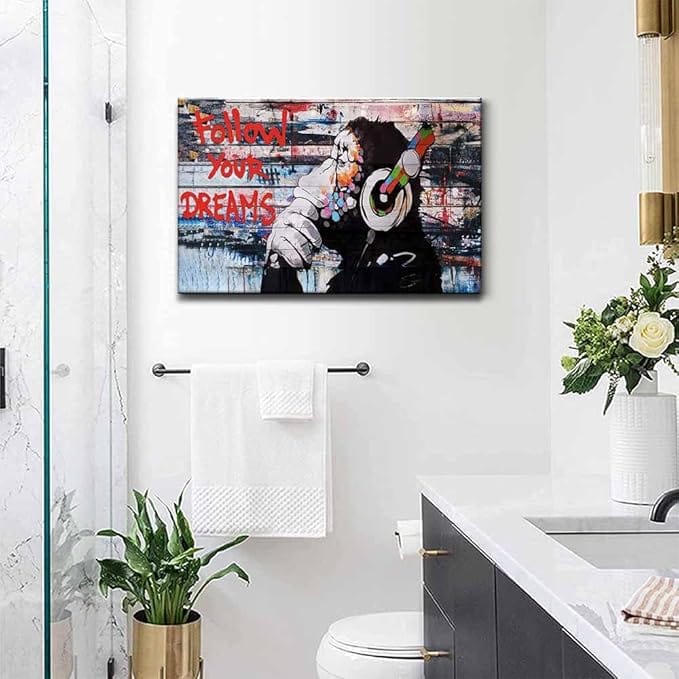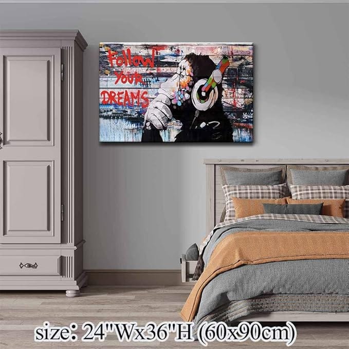 - Framed Banksy Graffiti Canvas Wall Art Follow Your Dreams
