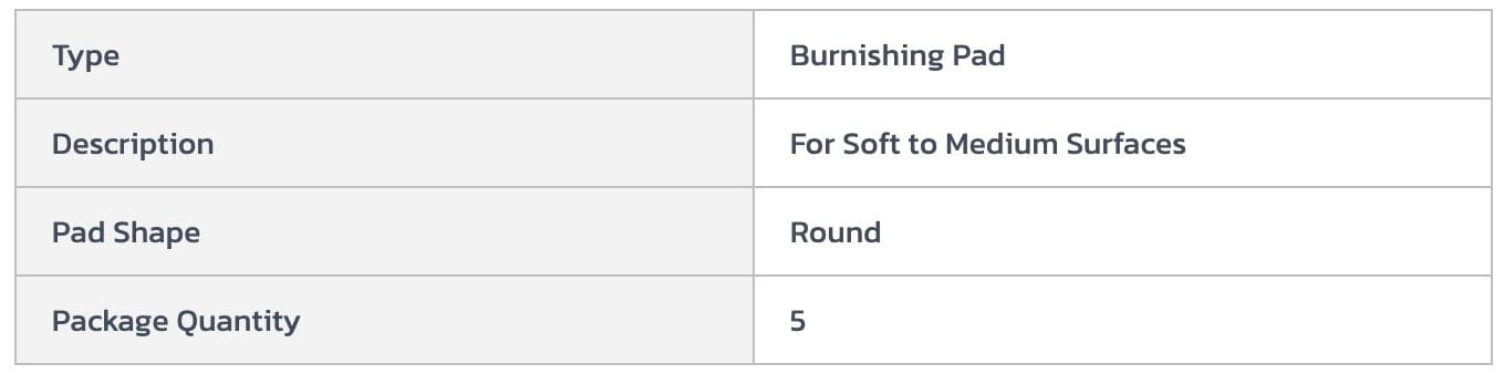 Centerline Dynamics Accessories & Supplies Global Industrial™ 20" Burnisher Pad, High Freq., Soft to Medium Finish - 5 Per Case