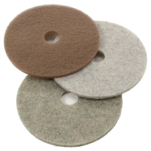 Pad is made using 100% recycled polyester fiber with 80% post consumer waste. Utilizes water-based latex resins in binding process to eliminate hazardous resins. Burnisher pad is for use with machines up to 3,000 RPM. UHS burnishing pad is made with blended polyester and natural fibers. Recommended for frequent burnishing on medium finishes. Sold 5 per case.