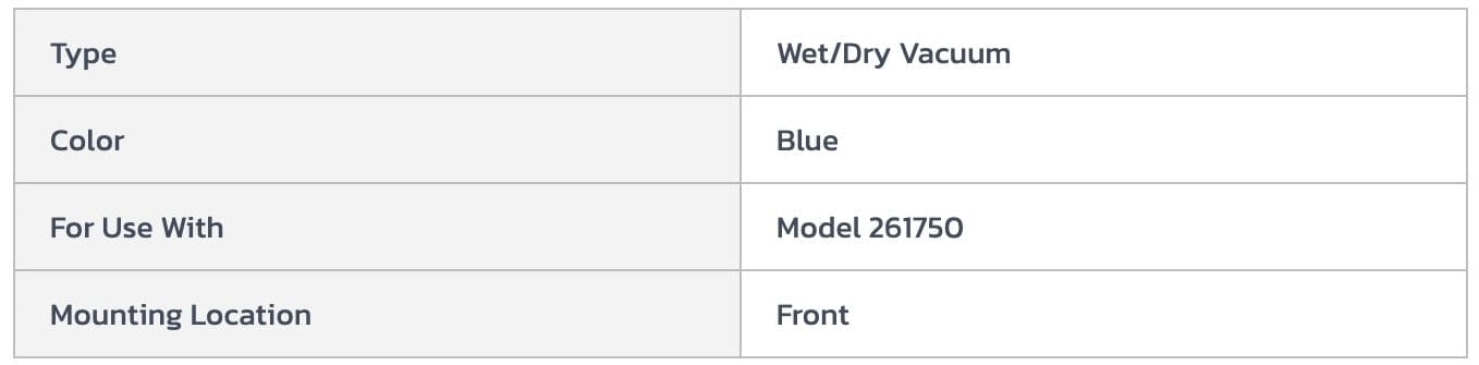 Easily attaches to front of Global® Wet & Dry Vacuum, Model 261750 (sold separately). Expands cleaning width to 30". Front-mount squeegee assembly for wet pick-up.