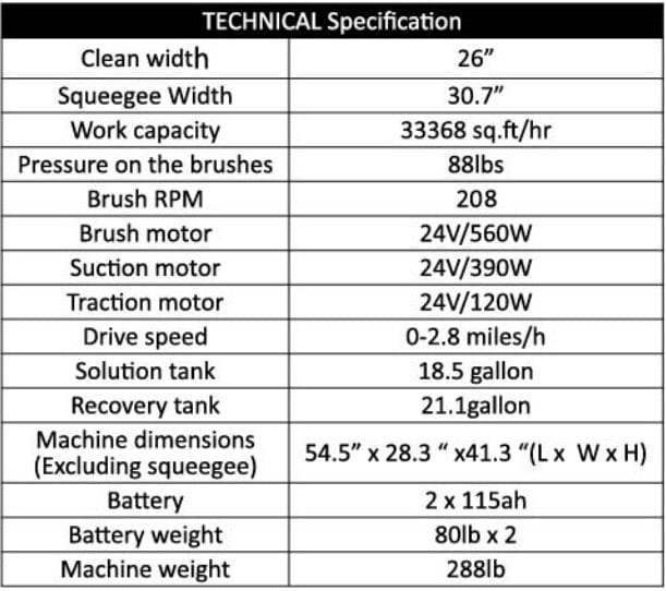 Auto Floor Scrubber With Traction Drive, 26" Cleaning Path