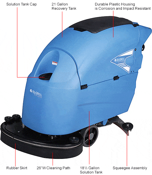 Centerline Dynamics Scrubbers & Floor Machines Global Industrial™ Auto Floor Scrubber With Traction Drive, 26" Cleaning Path