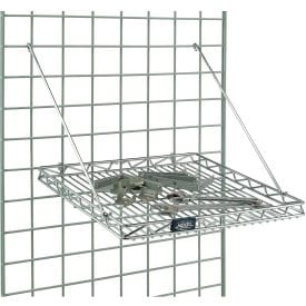 Allows valuable and convenient storage and display. Minimizes dust collection and increases visibility. Durable steel open wire allows light, air and sprinkler penetration. Includes 2 hooks for hanging and welded integral hooks shelf directly to grid wall panel. 1" rail ledge retains items on shelf.