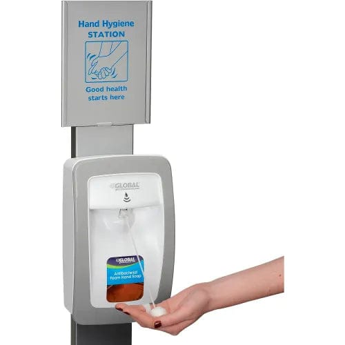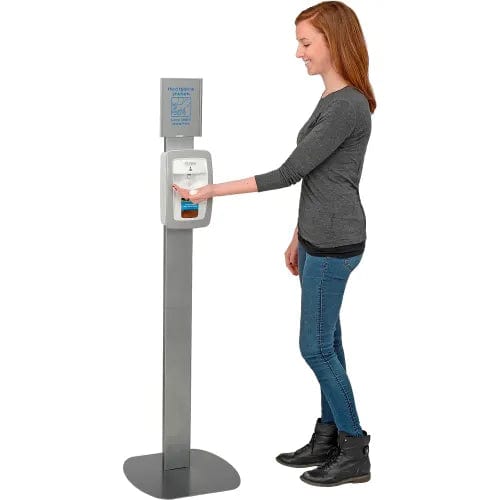 Global Industrial™ No Touch Floor Stand for Global Hand Soap/Sanitizer Dispensers - Silver