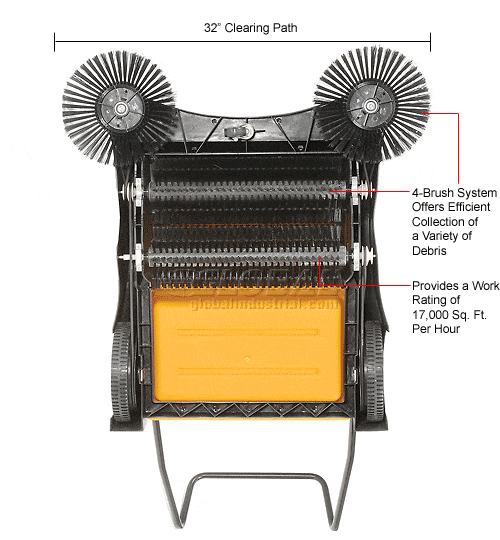 Centerline Dynamics Sweepers Global Industrial™ Push Sweeper, 32" Cleaning Path