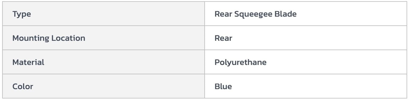 Designed to replace rear squeegee blades of 26" Floor Scrubbers. Constructed of durable polyurethane for long lasting use. Blue color finish.