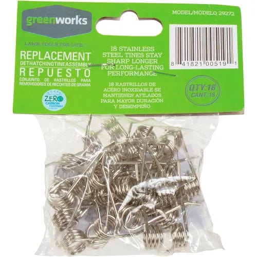 - Includes: Dethatcher, 18 replacement tine assemblies (36 total tines)