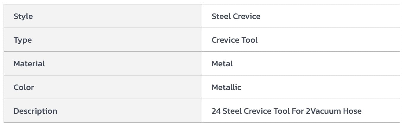 Ideal for vacuuming hard-to-reach places, the Metal Crevice Tool also excels in bulk pickup. Narrow, angled working end increases vacuum efficiency. For wet or dry pickup. Compatible with 1.5" or 2" vacuum hose accessories. Accessory.