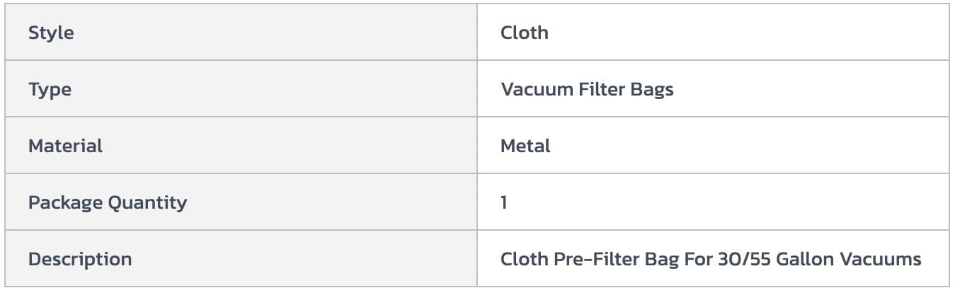 - Guardair Cloth Pre-Filter Bag For 30 & 50 Gallon Pneumatic Vacuums - Pkg Qty 3