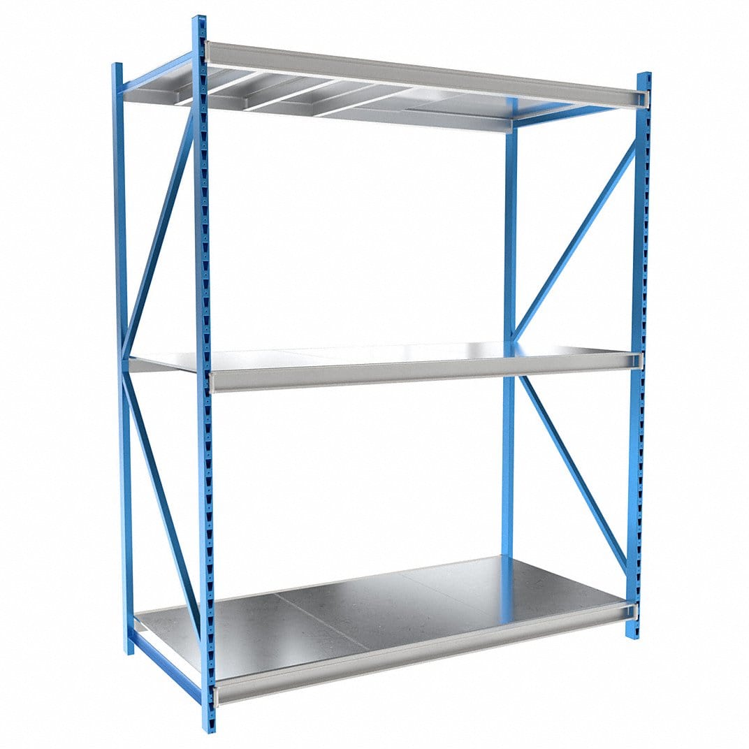 Centerline Dynamics Bulk Rack Starter Hallowell Bulk Rack 96"W x 48"D x 123"H, 3 Level Unit Includes Steel Shelf Deck