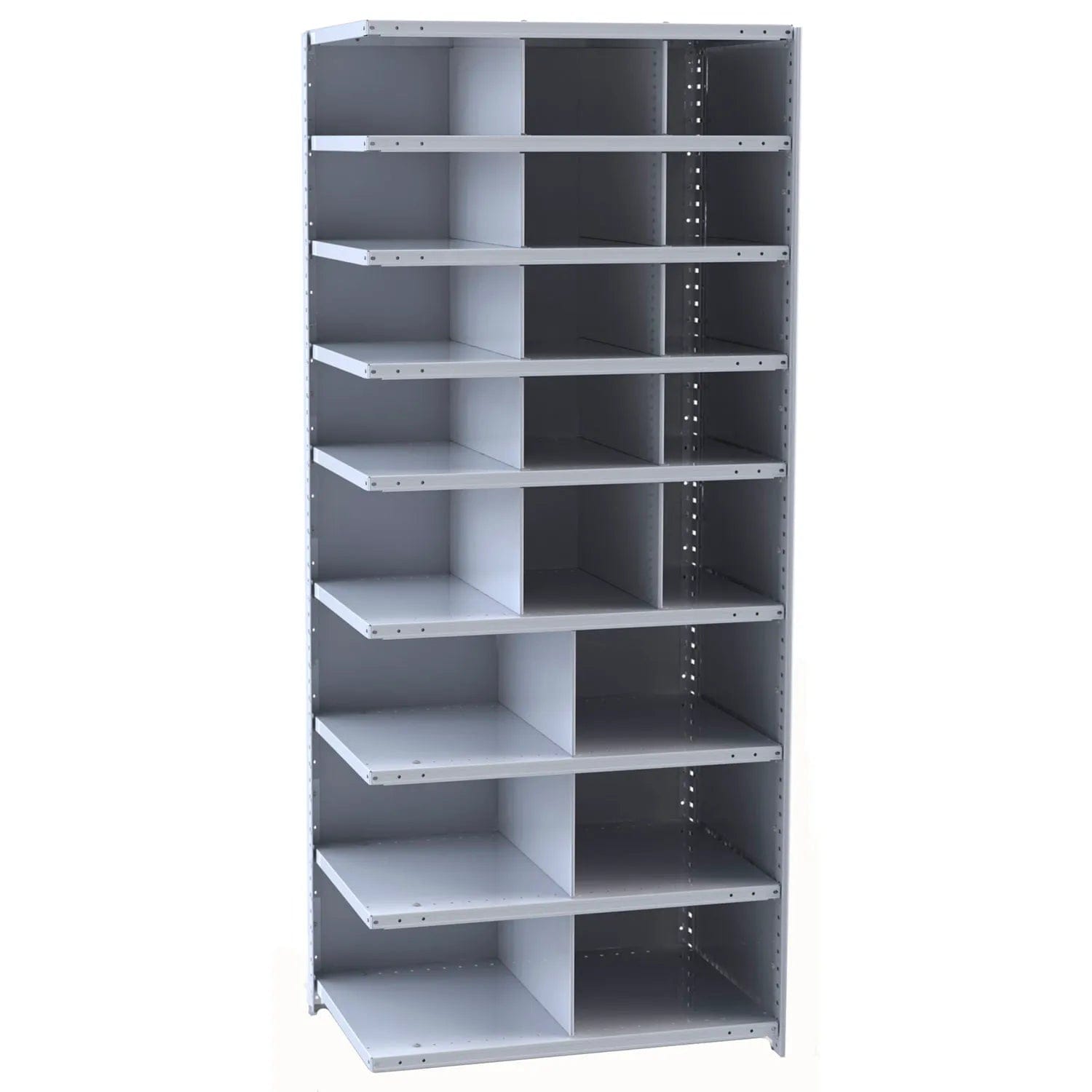 Centerline Dynamics Closed Metal Bin Shelving Adder Hallowell Hi-Tech Metal Bin Shelving 36"W x 12"D x 87"H 725 Dark Gray (12) 12"W x 9"H, (3) 12"W x 12"H, (6) 18"W x 12"H Bins