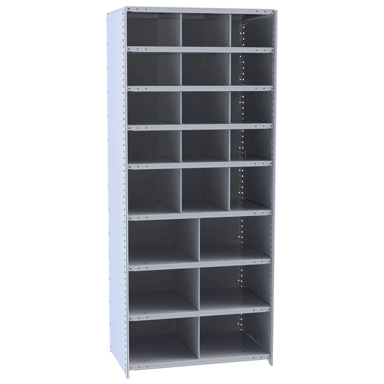 Centerline Dynamics Closed Metal Bin Shelving Starter Hallowell Hi-Tech Metal Bin Shelving 36"W x 12"D x 87"H 725 Dark Gray (12) 12"W x 9"H, (3) 12"W x 12"H, (6) 18"W x 12"H Bins