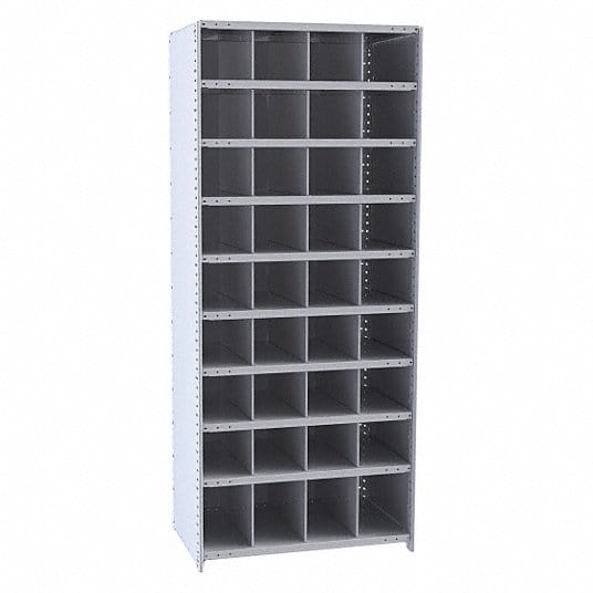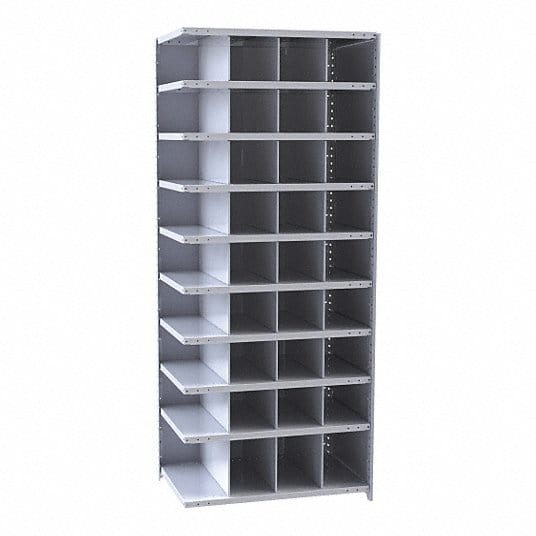 Centerline Dynamics Closed Metal Bin Shelving Starter Hallowell Hi-Tech Metal Bin Shelving 36"W x 12"D x 87"H 725 Dark Gray (32) 9"W x 9"H, (4) 9"W x 12"H Bins