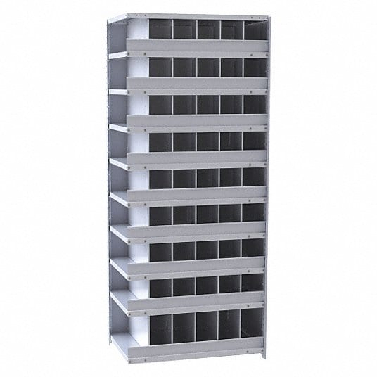 Hallowell Hi-Tech Metal Bin Shelving 36"W x 12"D x 87"H 725 Dark Gray (48) 6"W x 9"H, (6) 6"W x 12"H Bins With 3" Bin Fronts