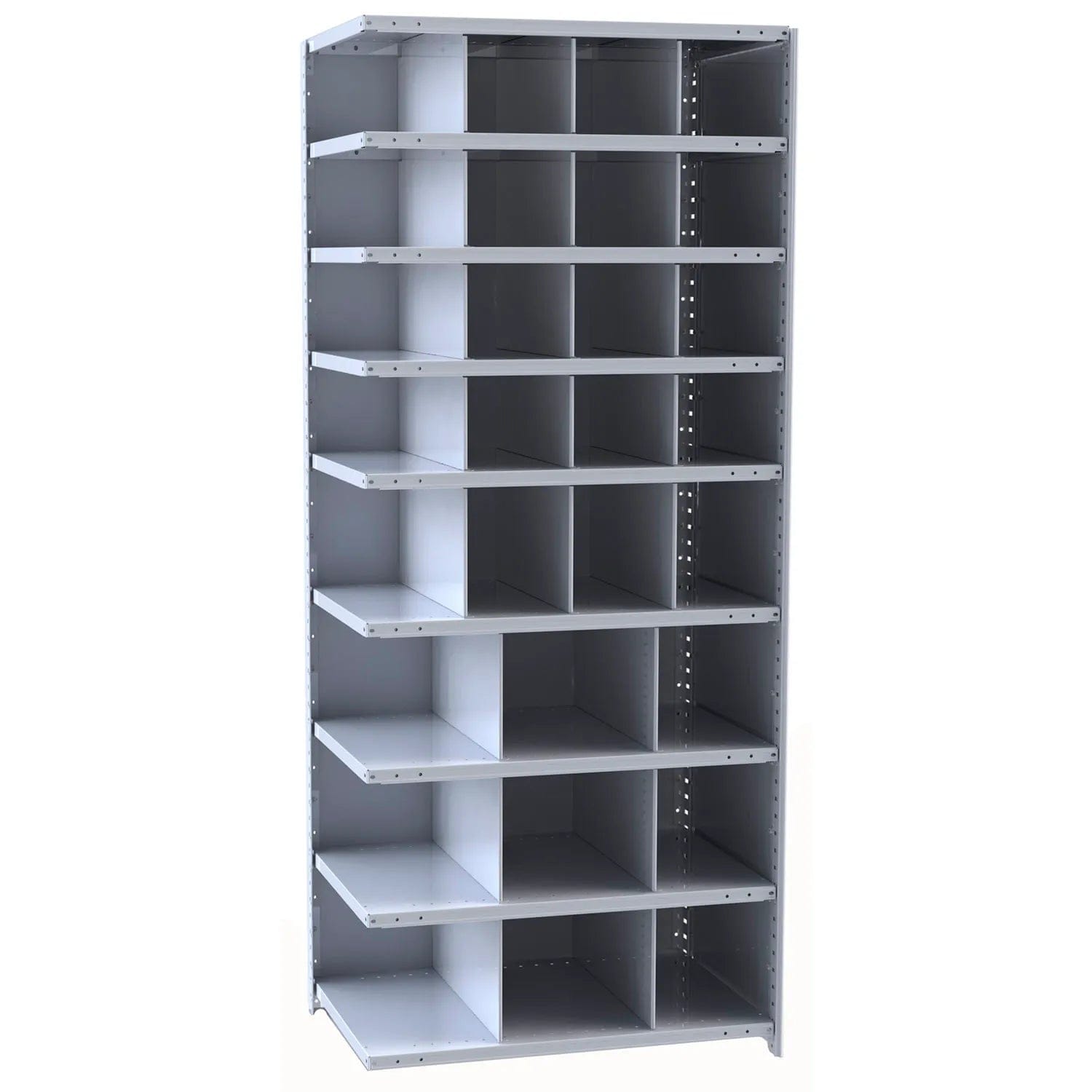 Hallowell Hi-Tech Metal Bin Shelving 36"W x 12"D x 87"H 725 Dark Gray Starter Unit (16) 9"W x 9"H, (4) 9"W x 12"H, (9) 12"W x 12"H Bins