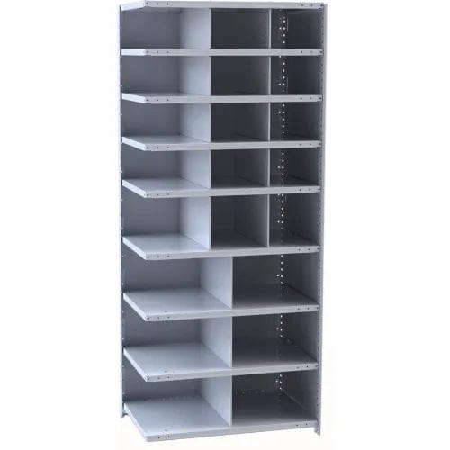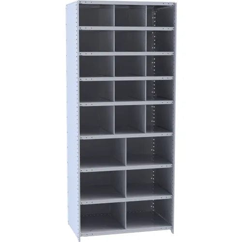 Centerline Dynamics Closed Metal Bin Shelving Starter Hallowell Hi-Tech Metal Bin Shelving 36"W x 18"D x 87"H 725 Dark Gray (12) 12"W x 9"H, (3) 12"W x 12"H, (6) 18"W x 12"H Bins