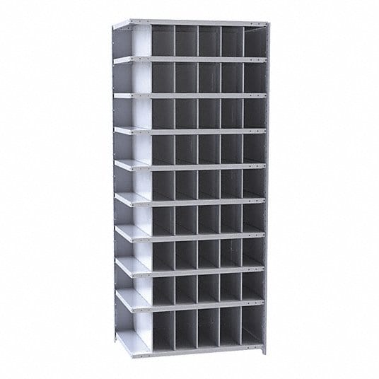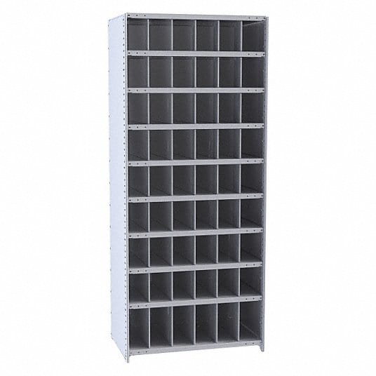 Hallowell Hi-Tech Metal Bin Shelving 36"W x 18"D x 87"H 725 Dark Gray (48) 6"W x 9"H, (6) 6"W x 12"H Bins