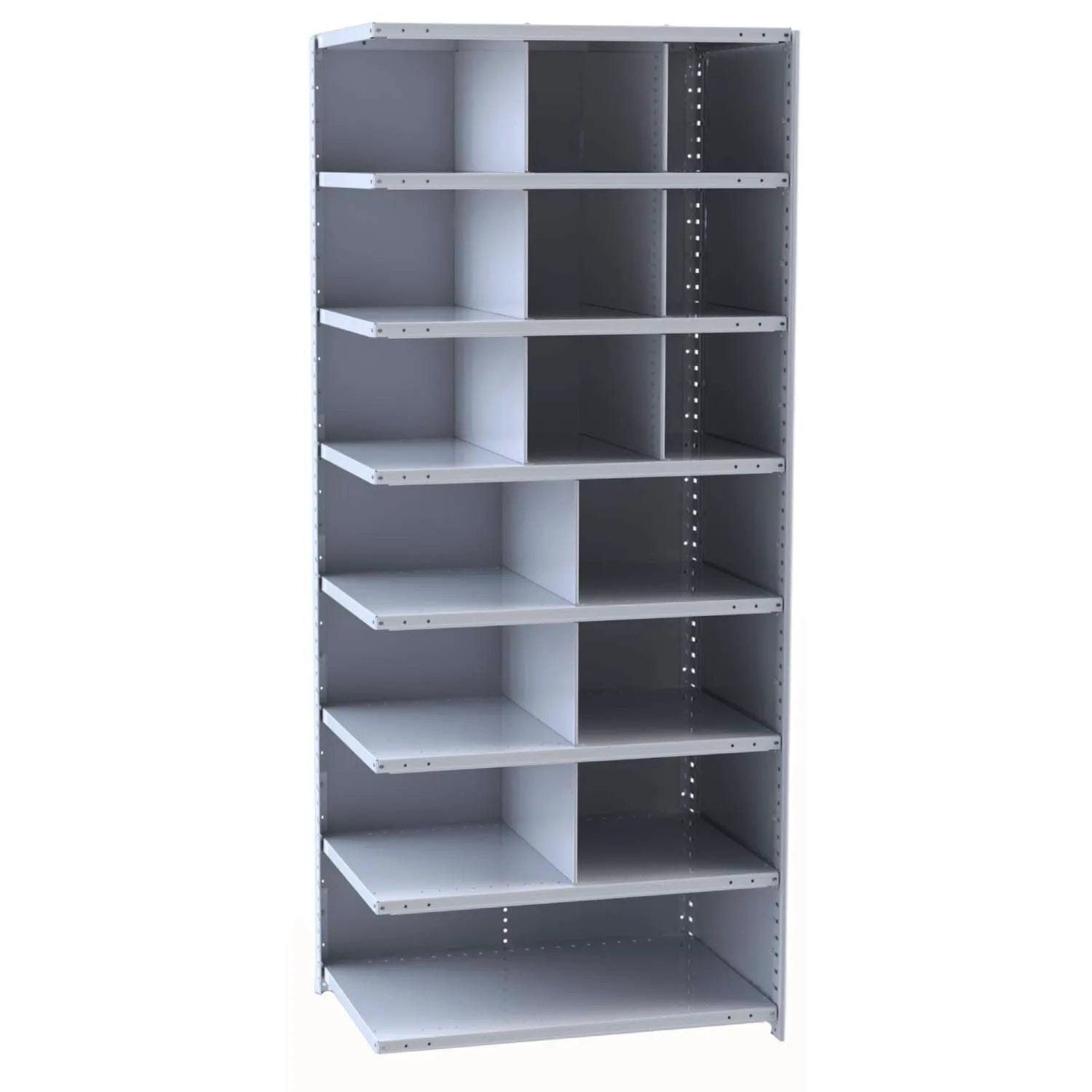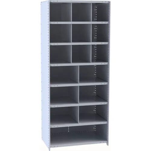 Centerline Dynamics Closed Metal Bin Shelving Starter Hallowell Hi-Tech Metal Bin Shelving 36"W x 18"D x 87"H 725 Dark Gray (9) 12"W x 12"H, (6) 18"W x 12"H, (1) 36"W x 12"H Bins
