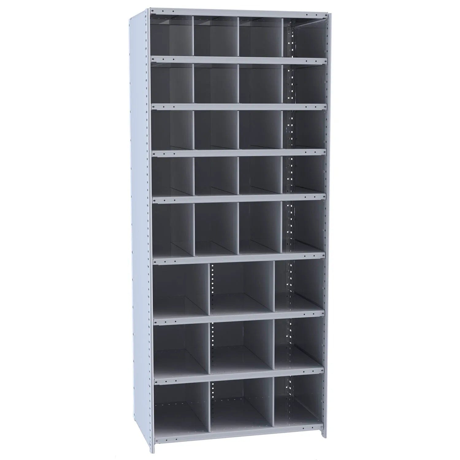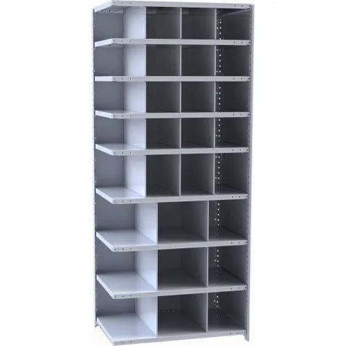 Hallowell Hi-Tech Metal Bin Shelving 36"W x 18"D x 87"H 725 Dark Gray Starter Unit (16) 9"W x 9"H, (4) 9"W x 12"H, (9) 12"W x 12"H Bins