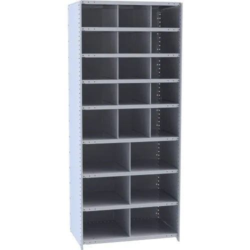 Centerline Dynamics Closed Metal Bin Shelving Starter Hallowell Hi-Tech Metal Bin Shelving 36"W x 24"D x 87"H 725 Dark Gray (12) 12"W x 9"H, (3) 12"W x 12"H, (6) 18"W x 12"H Bins