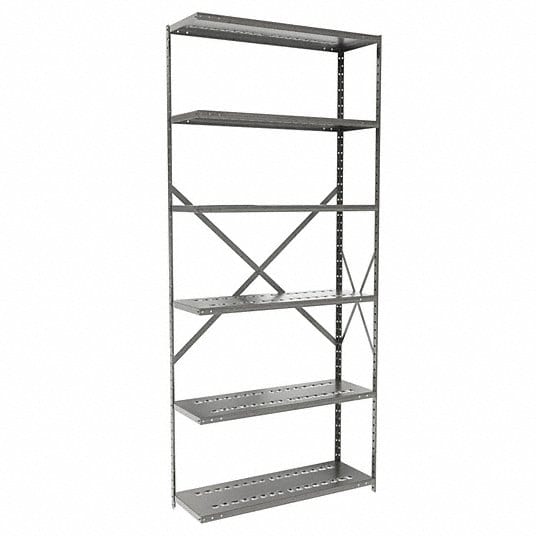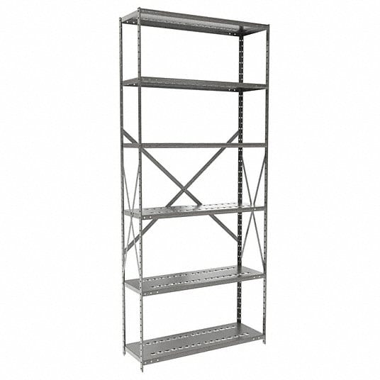 Centerline Dynamics Hi-Tech Metal Shelving Starter Hallowell Hi-Tech Metal Shelving 36"W x 12"D x 87"H 725 Dark Gray 6 Adjustable Shelves Unit Open Style with Sway Braces