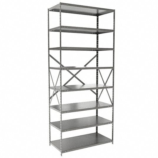 Centerline Dynamics Hi-Tech Metal Shelving Starter Hallowell Hi-Tech Metal Shelving 36"W x 18"D x 87"H 725 Dark Gray 8 Adjustable Shelves Unit Open Style with Sway Braces