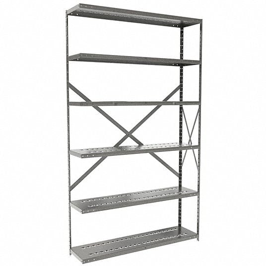 Centerline Dynamics Hi-Tech Metal Shelving Adder Hallowell Hi-Tech Metal Shelving 48"W x 12"D x 87"H 725 Dark Gray 6 Adjustable Shelves Unit Open Style with Sway Braces
