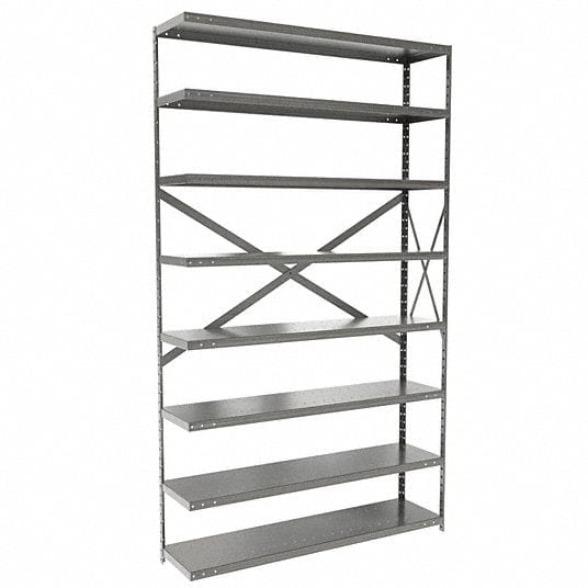Centerline Dynamics Hi-Tech Metal Shelving Starter Hallowell Hi-Tech Metal Shelving 48"W x 12"D x 87"H 725 Dark Gray 8 Adjustable Shelves Unit Open Style with Sway Braces