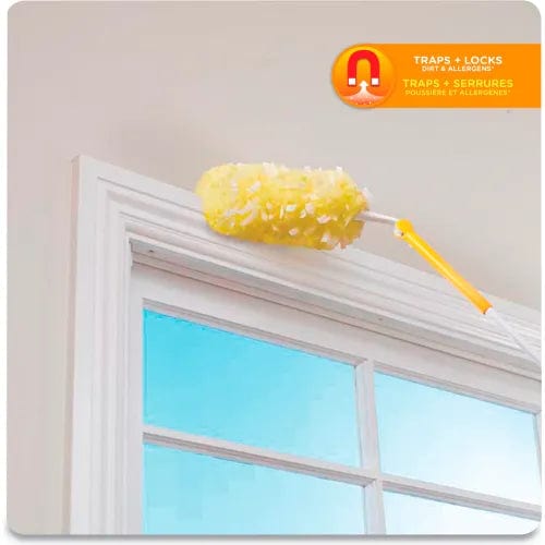 Now it's easier than ever to get to those hard-to-reach places. Pivoting head can be adjusted and locked into place for cleaning angled surfaces such as ceiling fans, cabinet corners and baseboards. Refill dusters sold separately. One handle and three dusters per box.