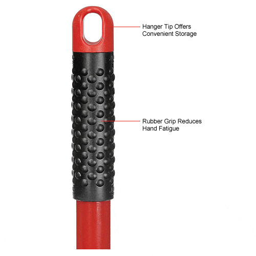 - 1" x 60" long steel, nylon thread handle with 5" handgrip and hanger hole.